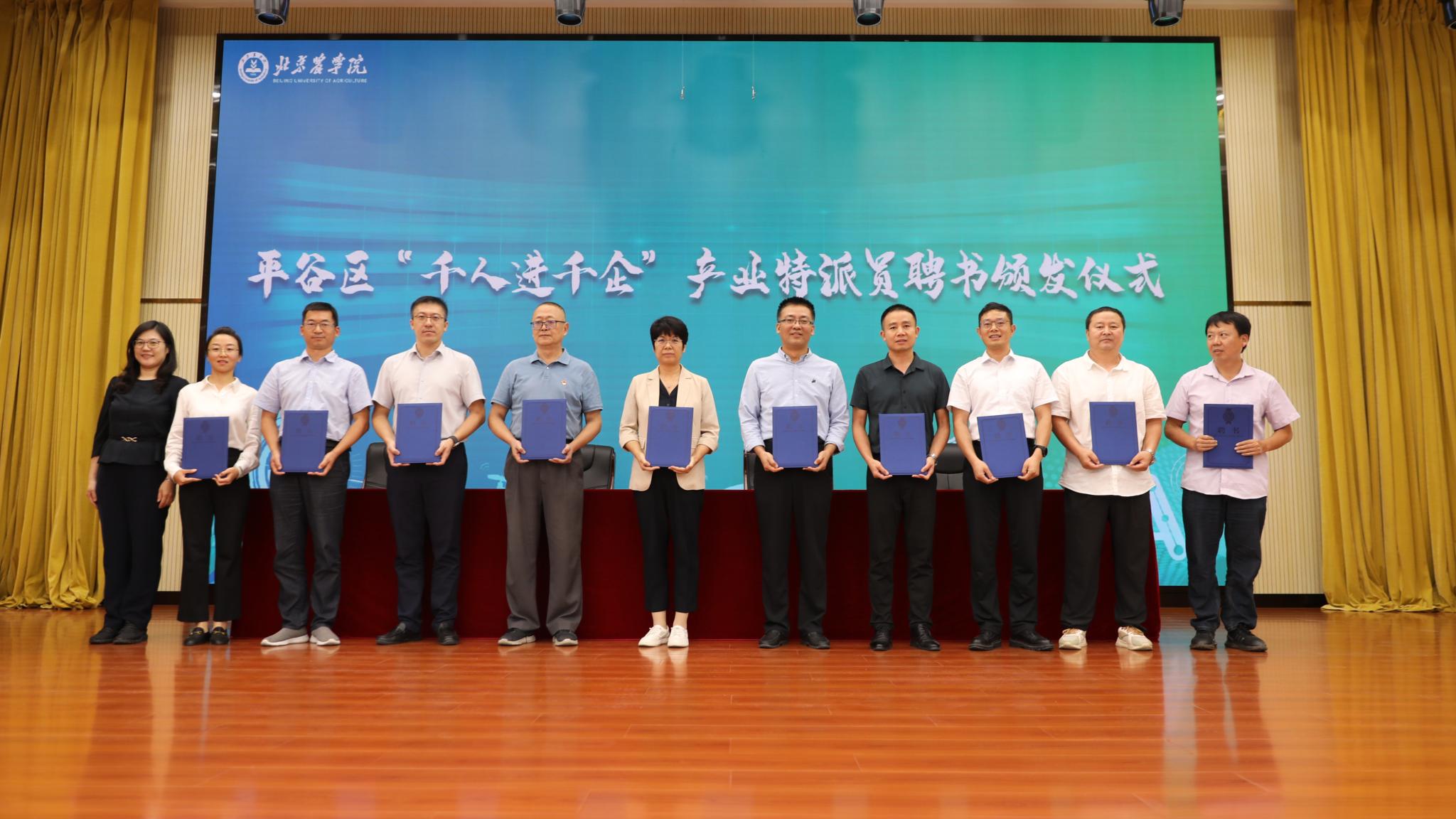 平谷區科協黨組書記、常務副主席趙菊為學校入選平谷“千人進千企”工作站的產業特派員頒發聘書。