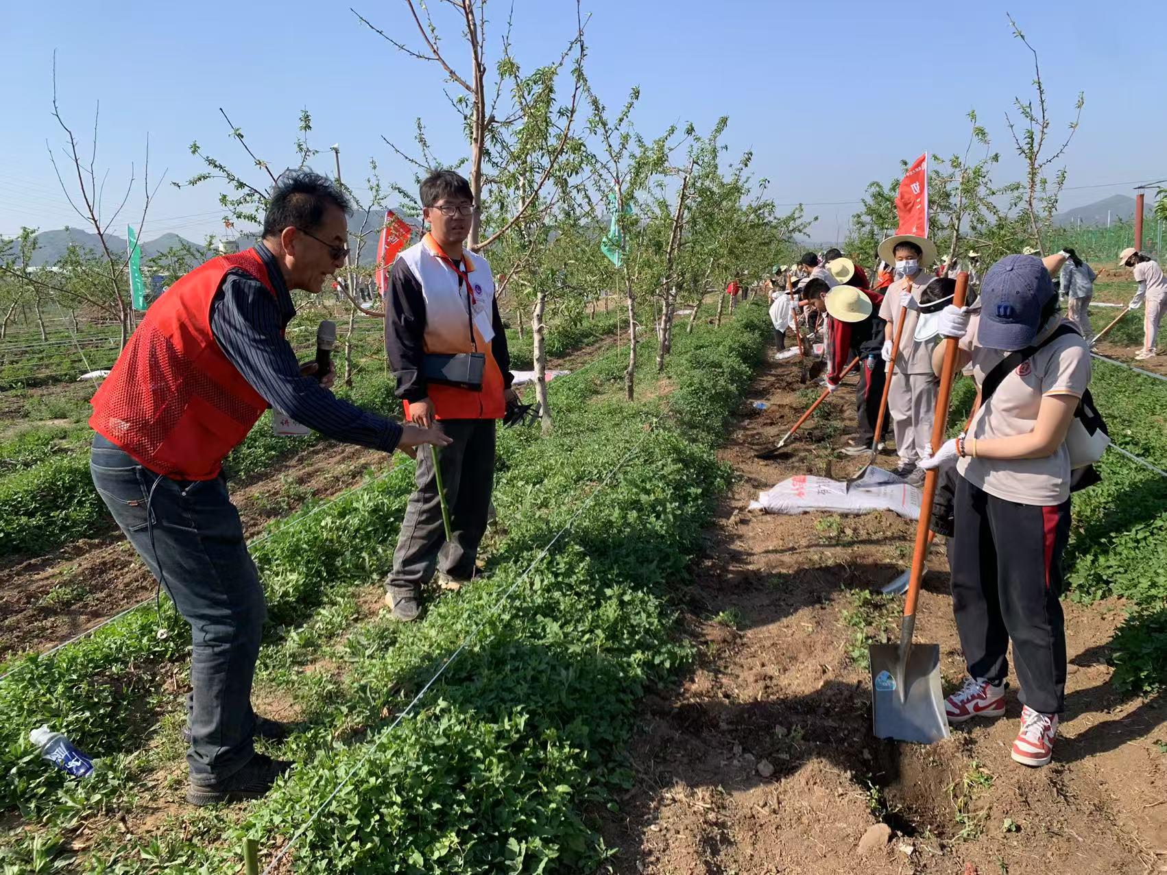 五一前夕,文法與城鄉(xiāng)發(fā)展學(xué)院高程達(dá)老師、生物與資源環(huán)境學(xué)院劉悅萍老師帶領(lǐng)寅洞村科技小院師生在平谷區(qū)劉家店鎮(zhèn)為北京師范大學(xué)附屬中學(xué)初二年級(jí)900余名師生開展耕讀研學(xué)活動(dòng),為同學(xué)們提供了一次沉浸式的農(nóng)業(yè)知識(shí)學(xué)習(xí)體驗(yàn)。劉悅萍在生態(tài)橋園區(qū)為學(xué)生們講解“桃園廢棄物資源化利用”知識(shí),高程達(dá)在丫吉農(nóng)場(chǎng)精心指導(dǎo)學(xué)生們學(xué)習(xí)了“桃園整地作畦”的專業(yè)技能。
