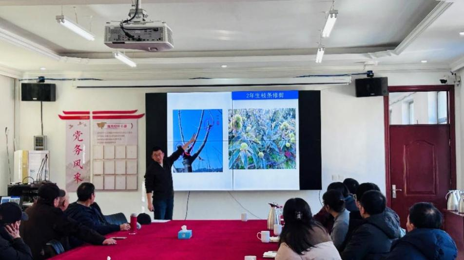 張卿從板栗產業發展遇到的痛點、堵點和難點入手,詳細向大家講授北京板栗產業面臨的形勢和未來發展機遇。參加培訓的技術骨干認真記錄著要點,還不時舉手提問。