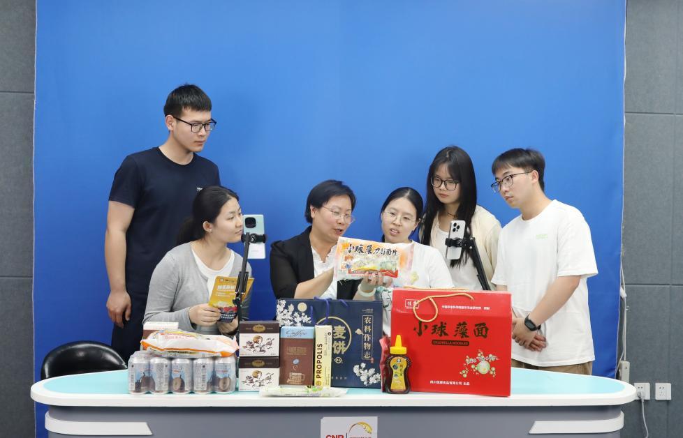 如何讓學生掌握直播所需的“十八般武藝”?根據桂琳的介紹,經管學院開設了組織行為學、數字營銷、營銷策劃等課程,以成立融媒體社團為契機,搭建了大大小小四個直播間,配齊了直播所需的攝像機、補光燈等設備,在新媒體平臺上注冊了供學生直播使用的賬號,并且協調了對接農業企業的相關產品。去年暑假,直播賬號堅持每天3小時的直播,同時,團隊教師系統講授直播運營策略、話術設計要點等實用技能,以確保熟練掌握直播技巧。