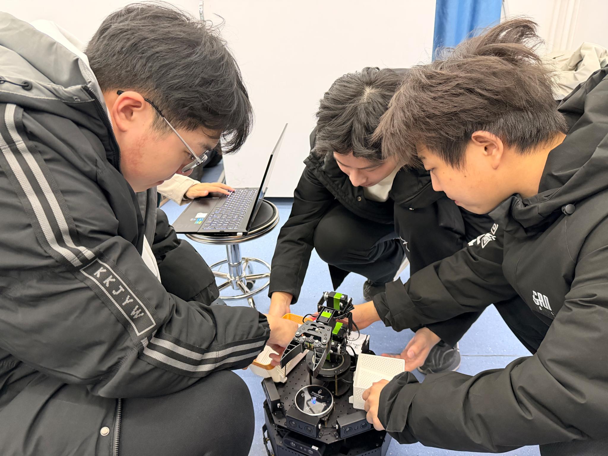 “立體凈界”賽題聚焦清潔機器人在復雜立體空間中的目標識別、分類抓取與智能收納等關鍵技術問題,對參賽團隊的人工智能模型訓練能力和工程實踐水平提出較高要求。我校智能學院的“正無窮戰隊”緊密圍繞賽題要求開展集中攻關,團隊結合專業知識體系,針對性優化目標識別算法與機械臂控制流程,成功實現復雜場景下的路徑規劃、物品識別與抓取分類等核心功能。比賽現場,團隊研發的智能清潔機器人在規定時間內高效完成全部任務,以96分的優異成績榮獲一等獎。
