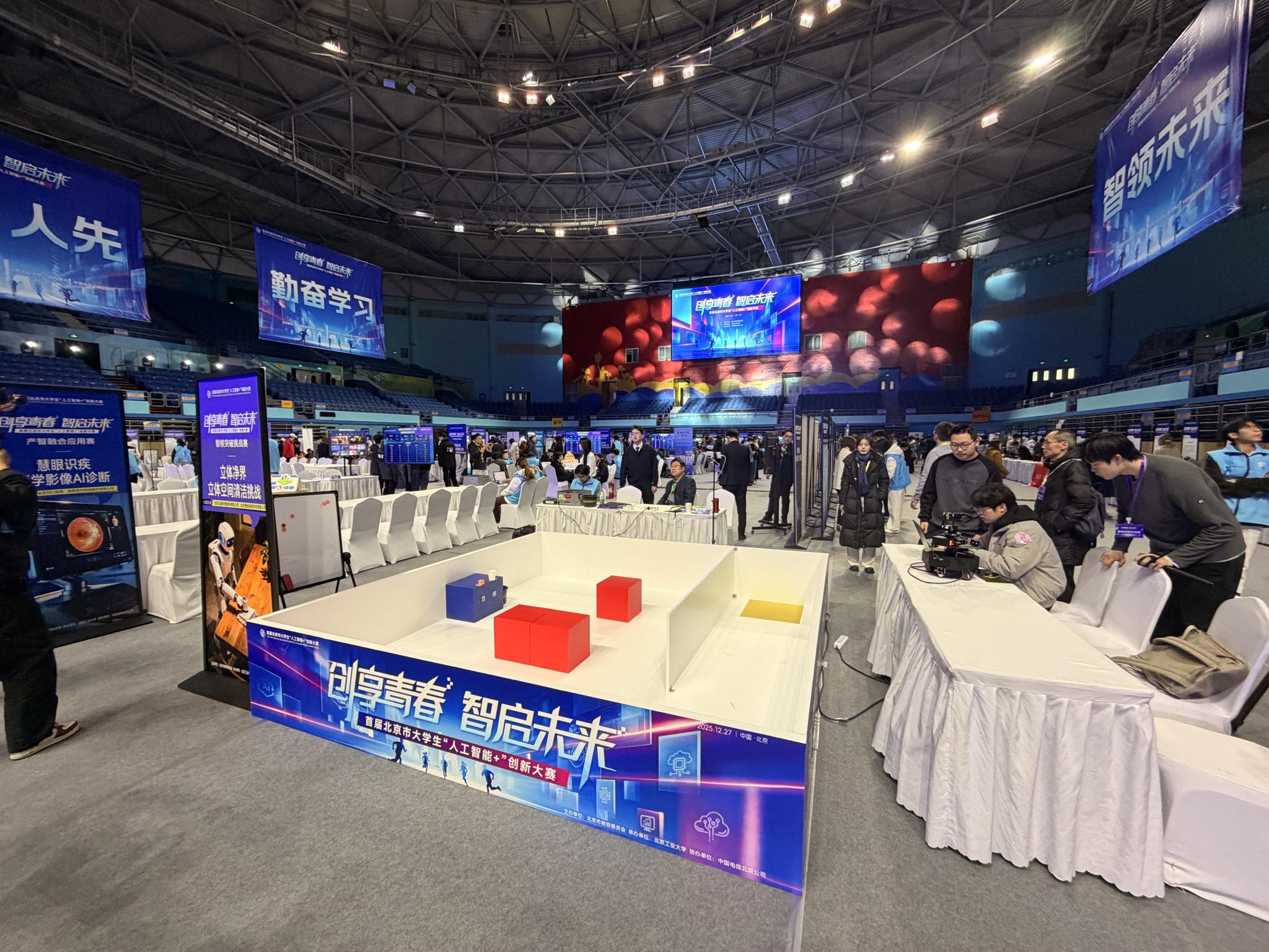 本次大賽設立“智核突破挑戰賽”“產智融合應用賽”“元創開拓創意賽”三大板塊,比賽采用“企業出真題、學界解難題、成果受檢驗”的模式,讓參賽團隊的每一份創新答卷都能直接接受產業實踐的檢驗。來自55所高校的222支隊伍、921名選手晉級決賽。