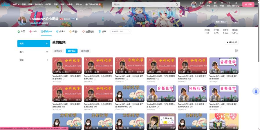 于是趙文婷的課程有了解題思路:第一招:搭梯子。從學生已有的知識儲備出發,像拼拼圖一樣整合新舊內容,讓新的知識“長”在舊的根基上。第二招:穿針引線。拒絕題海戰術,用一個知識點破解一類題,比如用“分析溶液構成”這一句話貫穿所有滴定分析的章節,讓學生學會“以一敵百”。第三招:建“許愿池”。在Bilibili網站開了線上教學頻道“Teacher趙的小講堂”,從分析化學入門到考研全程在線服務。沒想到這已經成了學生的“考前錦鯉”,評論區滿是“考過了就來還愿”的留言——現在她也是坐擁百萬播放量的知識區up主了!