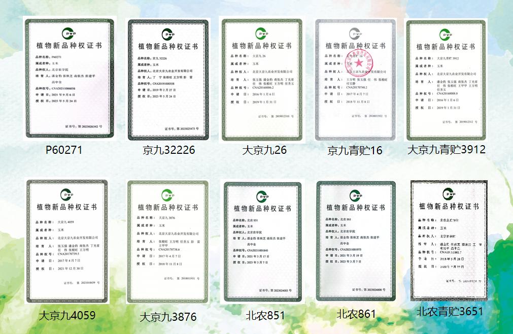 青貯玉米團隊先后培育出高產、優質、多抗、廣適、易制種的專用型玉米品種20余個。其中,國審品種北農青貯368成功入選《國家農作物優良品種推廣目錄》,是唯一入選的特專型青貯玉米品種。北農3651、北農851、北農861,優良青貯玉米自交系P2193、P60271先后取得國家植物新品種權證書。