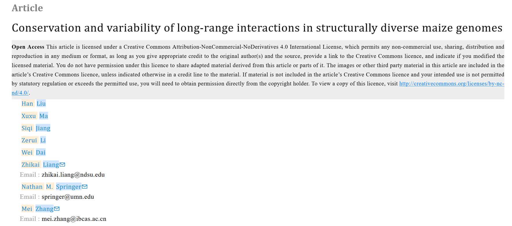 一代人有一代人的使命。三年前,劉函加入青貯玉米團隊。近日,他的論文《玉米基因組三維互作的保守性與可變性研究》,發表在《自然·通訊》雜志,這是過去幾年他對雜種優勢分子機理給出的一個三維基因組學角度的潛在解釋。“我下一步的目標是采用基因編輯和分子標記輔助育種,增加‘北農青貯368’的穗行數,使‘北農青貯368’成為生物產量和籽粒產量雙高的自我迭代產品。”劉函堅定地說。