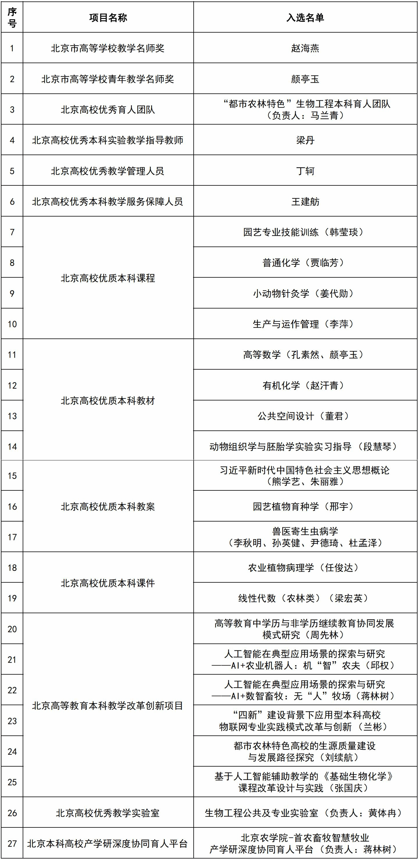 近日,北京市教委發布了《北京市教育委員會關于公示2024年北京高校本科教學項目建設評選結果的通知》,我校27個項目入選,創歷史新高,其中北京市高等學校教學名師獎1人,北京市高等學校青年教學名師獎1人,北京高校優秀育人團隊1個,北京高校優秀本科實驗教學指導教師1人,北京高校優秀教學管理人員1人,北京高校優秀本科教學服務保障人員1人,北京高校優質本科課程4項,北京高校優質本科教材4項,北京高校優質本科教案3項,北京高校優質本科課件2項,北京高等教育本科教學改革創新項目6項,北京高等學校優秀教學實驗室1個,北京本科高校產學研深度協同育人平臺1個。