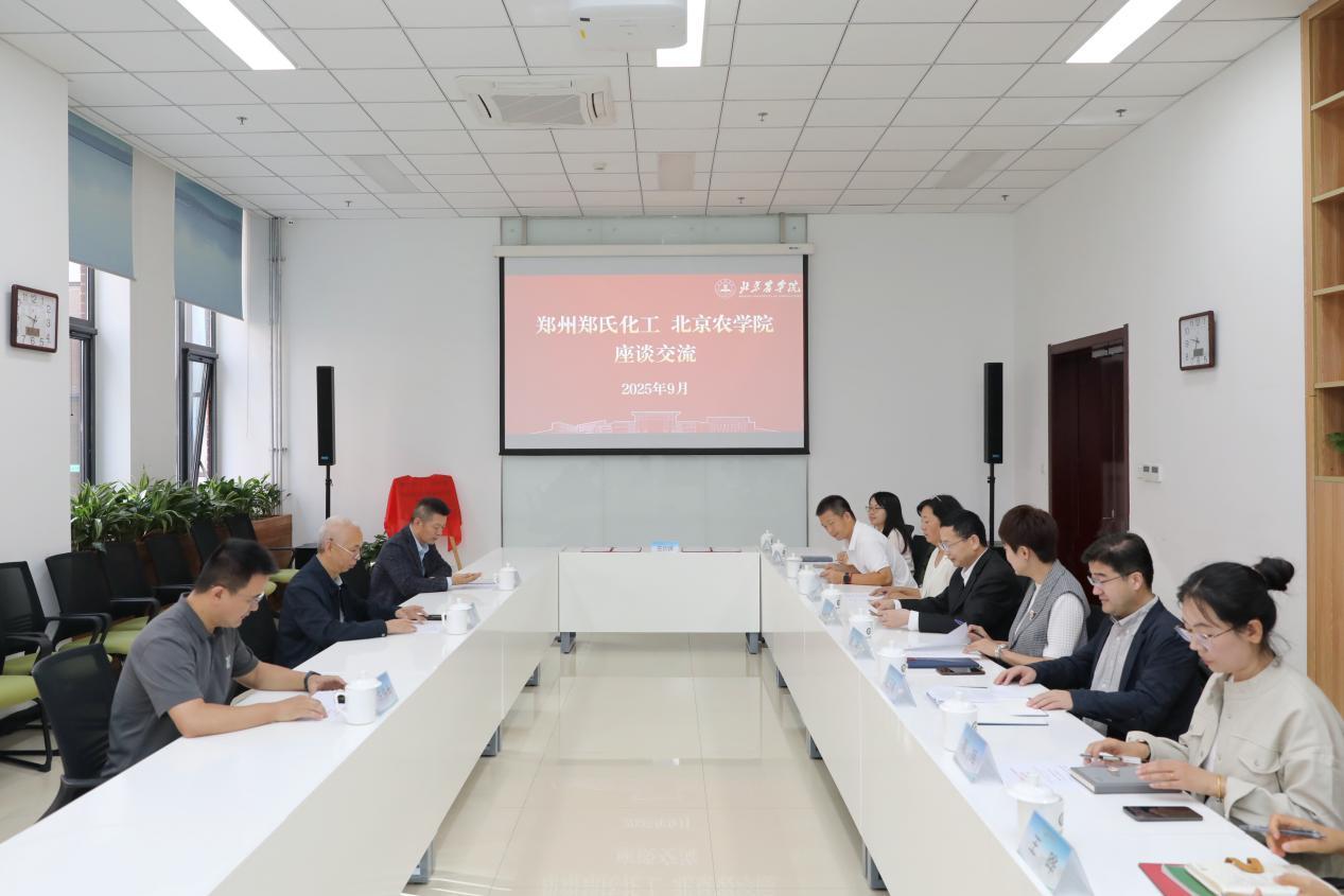 段留生對(duì)鄭先福一行的到訪表示熱烈歡迎。他指出,北京農(nóng)學(xué)院立足高水平應(yīng)用型大學(xué)發(fā)展定位,堅(jiān)持走內(nèi)涵特色差異化發(fā)展道路,凝練“小而精、特而優(yōu)”的專業(yè)特色,緊扣國家重大戰(zhàn)略和社會(huì)大眾需求,積極推動(dòng)教育、科技、人才與產(chǎn)業(yè)需求緊密對(duì)接。希望雙方以共建作物生長(zhǎng)綠色調(diào)控技術(shù)產(chǎn)業(yè)研究院為新的合作起點(diǎn),集成多方資源力量,促進(jìn)跨學(xué)科、跨單位、跨領(lǐng)域的協(xié)同創(chuàng)新,推動(dòng)更多成果轉(zhuǎn)化應(yīng)用,合力破解農(nóng)業(yè)生產(chǎn)中的綠色瓶頸問題,探索經(jīng)濟(jì)效益、社會(huì)效益、生態(tài)效益協(xié)同共進(jìn)的高質(zhì)量發(fā)展路徑,為區(qū)域經(jīng)濟(jì)社會(huì)發(fā)展作出更大貢獻(xiàn)。