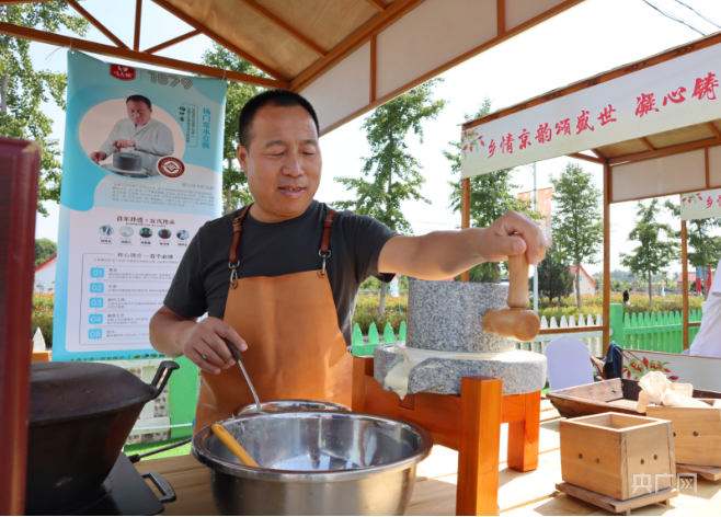 楊門漿水豆腐傳承人向記者展示漿水豆腐制作(央廣網記者 龐婷 攝)