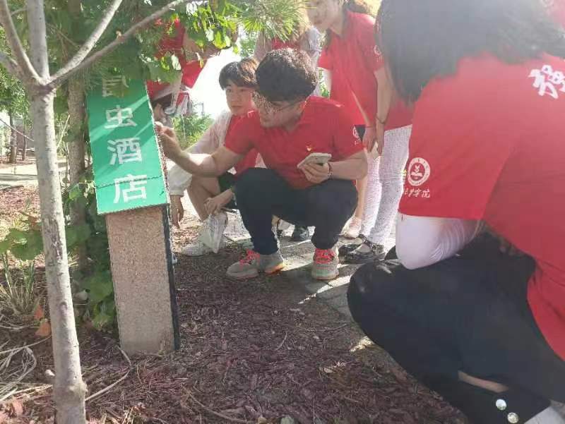 實踐過程中,師生現場上了一節“植保專業課”,老師現場講解番茄和黃瓜病蟲害、“昆蟲酒店”及性誘芯的設計原理及意義,學生就地設計實驗計劃,就如何通過高科技助農防蟲害進行了深入廣泛探討,并采集了部分樣品進行后續試驗。