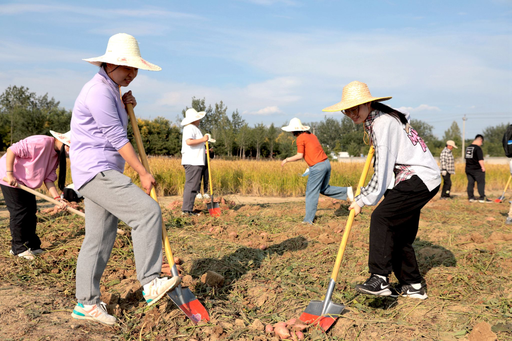 植物科學技術學院園藝專業學生孫彤和蘇雨桐一邊挖紅薯一邊復習上午在課堂上學到的專業知識:“上午園藝植物栽培學課上,老師教我們認識園藝植物的組織器官,下午又來到田間地頭一邊勞動一邊學習,專業知識一下子記牢了。”文法與城鄉發展學院法學2班王欣蕊與同學配合,挖到很多紅薯與花生。捧著勞動的果實,她說:“來到田間才能更深感受到農業的含義,親身勞作能真正體會勞動的辛苦和豐收的喜悅,這堂‘耕讀教育課’非常有意義。”