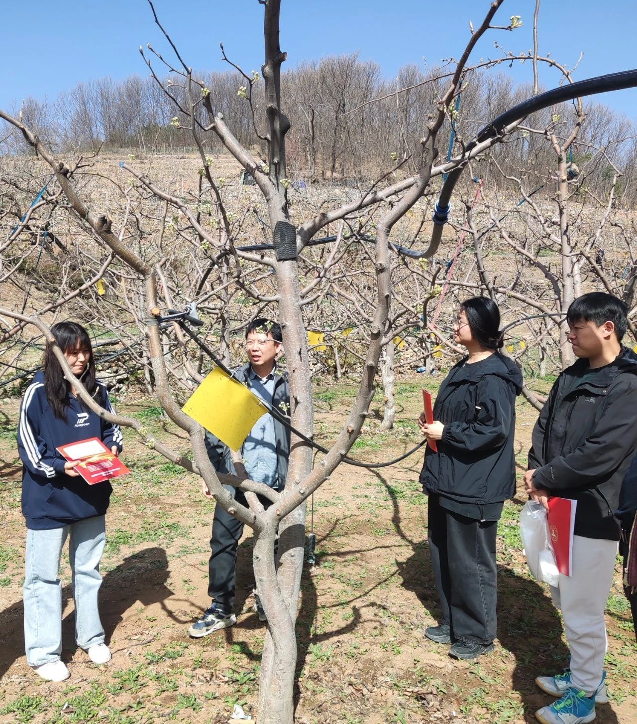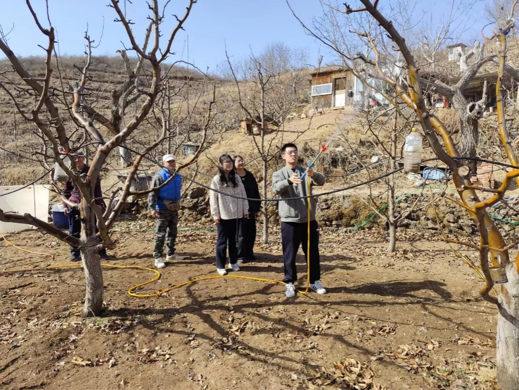 “現在梨木虱蟲口密度在中果園中較大,需要抓緊處理,以防對梨樹生長造成更大影響?!?月7日,茅山后村佛見喜梨科技小院負責人、我校生物與資源環境學院任爭光副教授帶領研究生到平谷區金海湖鎮茅山后村開展佛見喜梨生長情況調研,并指導果農進行春季梨樹病蟲害防治工作。