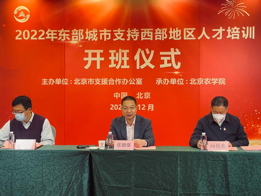12月12日上午,我校承辦的2022年東部城市支持西部地區人才培訓班順利開班。來自西部地區11個省、市、自治區、生產建設兵團承擔鄉村振興任務的基層人才共285人分四期參加此次培訓。學校黨委常委、副院長張德強在開班儀式上作動員講話。北京市支援合作辦智力支援處處長向傳杰出席開班儀式。
