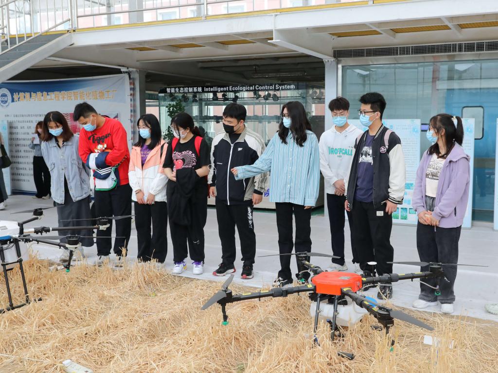 在智慧農業實驗溫室內,水質監測系統、智慧蜂箱、植保無人機、智能無人拖拉機、五合一新型太陽能傳感器、智慧農業控制終端、智能植物生理檢測儀、智慧農業卷膜通風控制器等智慧農業科技成果引起同學們贊嘆,大家直觀深入地感受到現代農業和智慧農業的魅力。