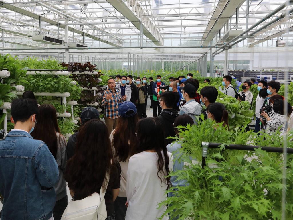 在國家級教學示范中心的玻璃連棟溫室內,無土栽培的種植模式吸引了同學們的目光,同學們在劉超杰副教授的講解下,了解現代化農業種植智能環境控制系統,以及該校教學科研團隊研發的栽培基質、營養液配方、栽培新技術等。“蔬菜生長所需營養液來源于有機肥料,病蟲害采用生物防治產品,可達無公害,有機綠色標準。”劉超杰介紹道。同學們一邊聽著講解,一邊參觀溫室內種植的生菜、番茄、黃瓜等蔬菜,觀賞矮化番茄、矮化辣椒、安其拉花茄、金桔、枇杷、矮化蘋果等盆栽園藝植物,直呼大開眼界。