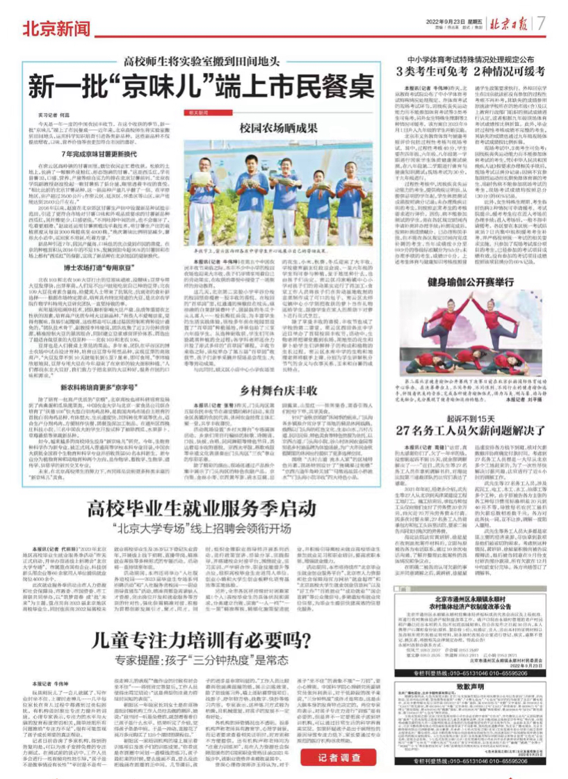 今天是一年一度的中國農民豐收節。在這個收獲的季節,新一批“京味兒”端上了市民餐桌——近年來,北京高校師生將實驗室搬到田間地頭,運用科學知識培育引進各類新品種。這些新品種不僅提質增收,口味、營養價值等也更加符合市民的喜好。