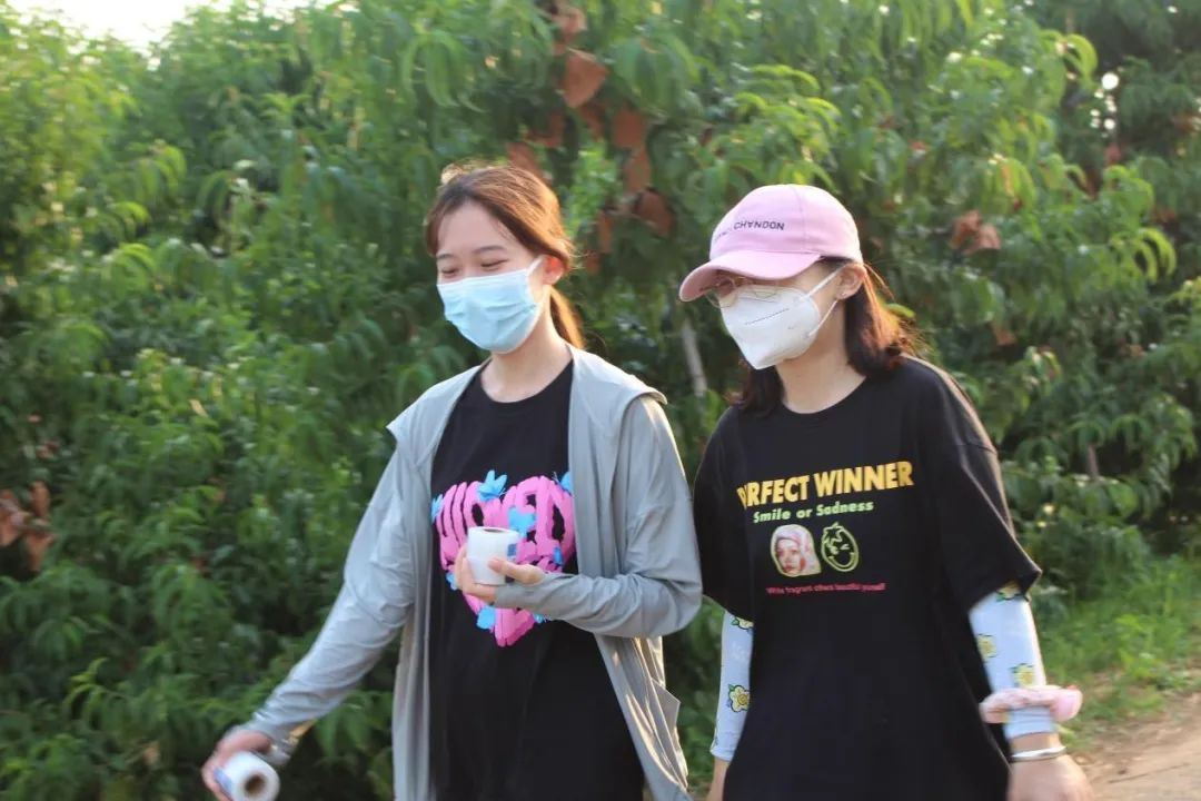 師生走進田間地頭,從桃貼的設計、制作、裁剪,再到田間尋找合適的果型、貼制以及歷經一周曬印圖案成形的文創桃總結,切身體會文創桃制作的全過程,將文創桃的制作過程對果農進行指導。