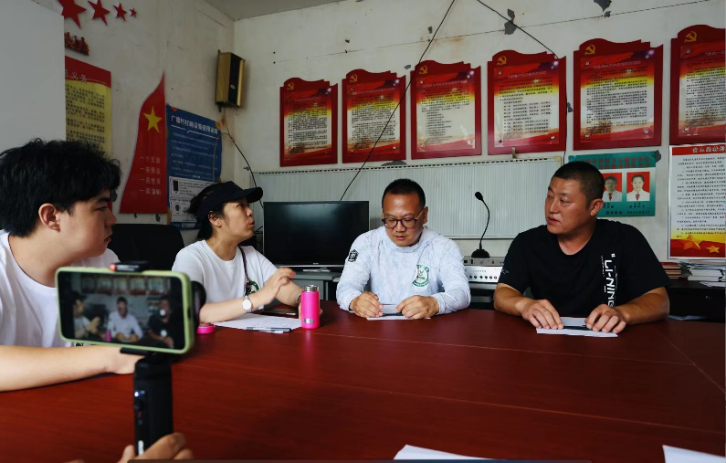 除了繪制主題墻繪,實踐團還與村書記座談并進行了現(xiàn)場調研。清芒谷團隊提出以更新包裝設計助力農產品銷售的方法,兩位村書記充分認可這一想法,大家圍繞具體工作進行了深入探討交流。