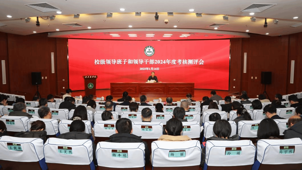 1月14日,學校召開校級領導班子和領導干部2024年度考核測評會。黨委書記趙鋒代表領導班子作年度述職報告和干部選拔任用工作報告,其他領導干部以書面形式進行述職。會議由趙鋒主持。學校領導班子成員、處級正職以及其他干部群眾代表等參會。