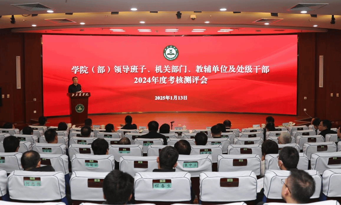1月13日,學(xué)校召開學(xué)院(部)領(lǐng)導(dǎo)班子、機(jī)關(guān)部門、教輔單位及處級(jí)干部2024年度考核測(cè)評(píng)會(huì)。全體校領(lǐng)導(dǎo)出席會(huì)議,黨委書記趙鋒作總結(jié)講話。會(huì)議由黨委副書記仲叢生主持。