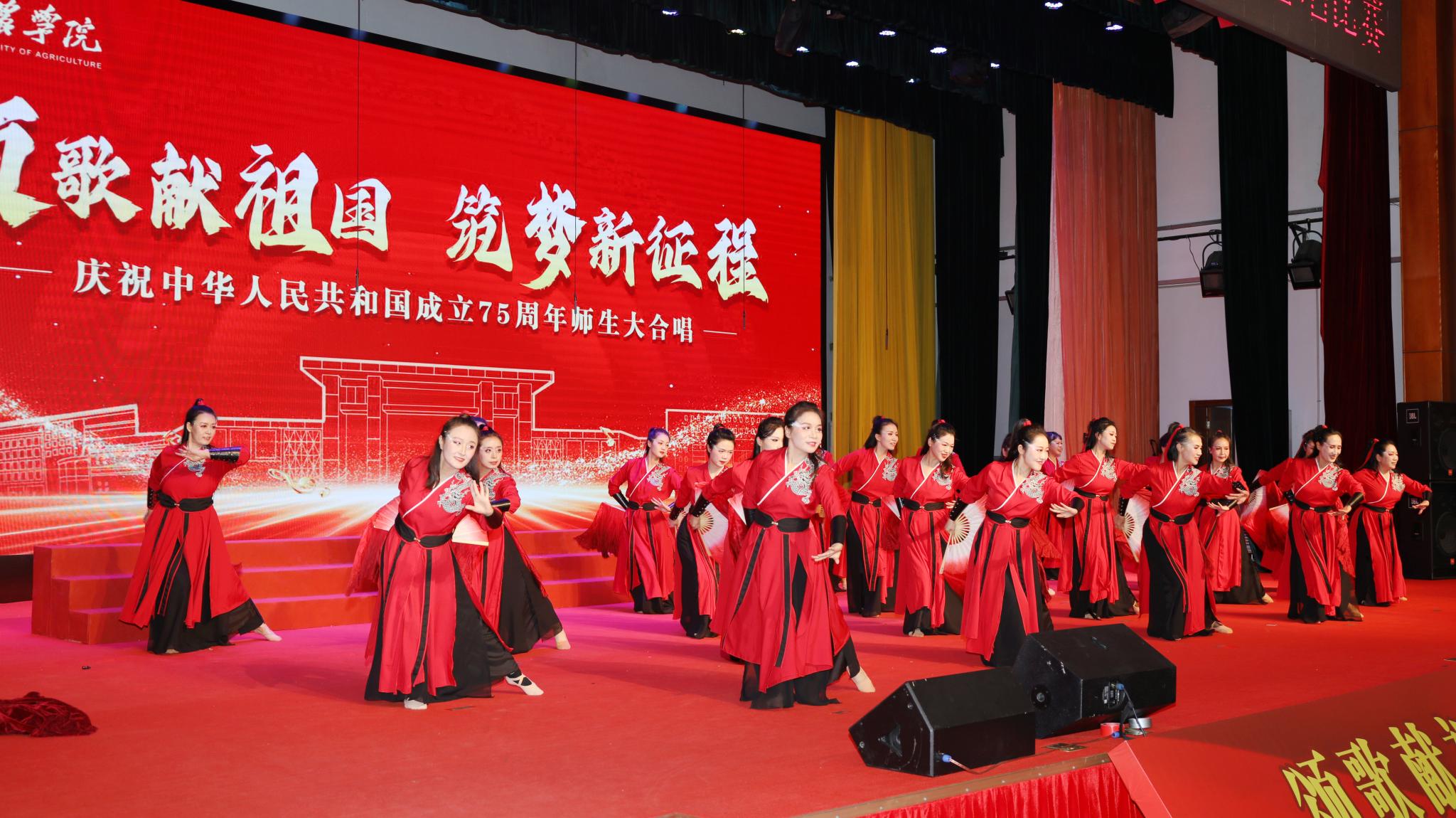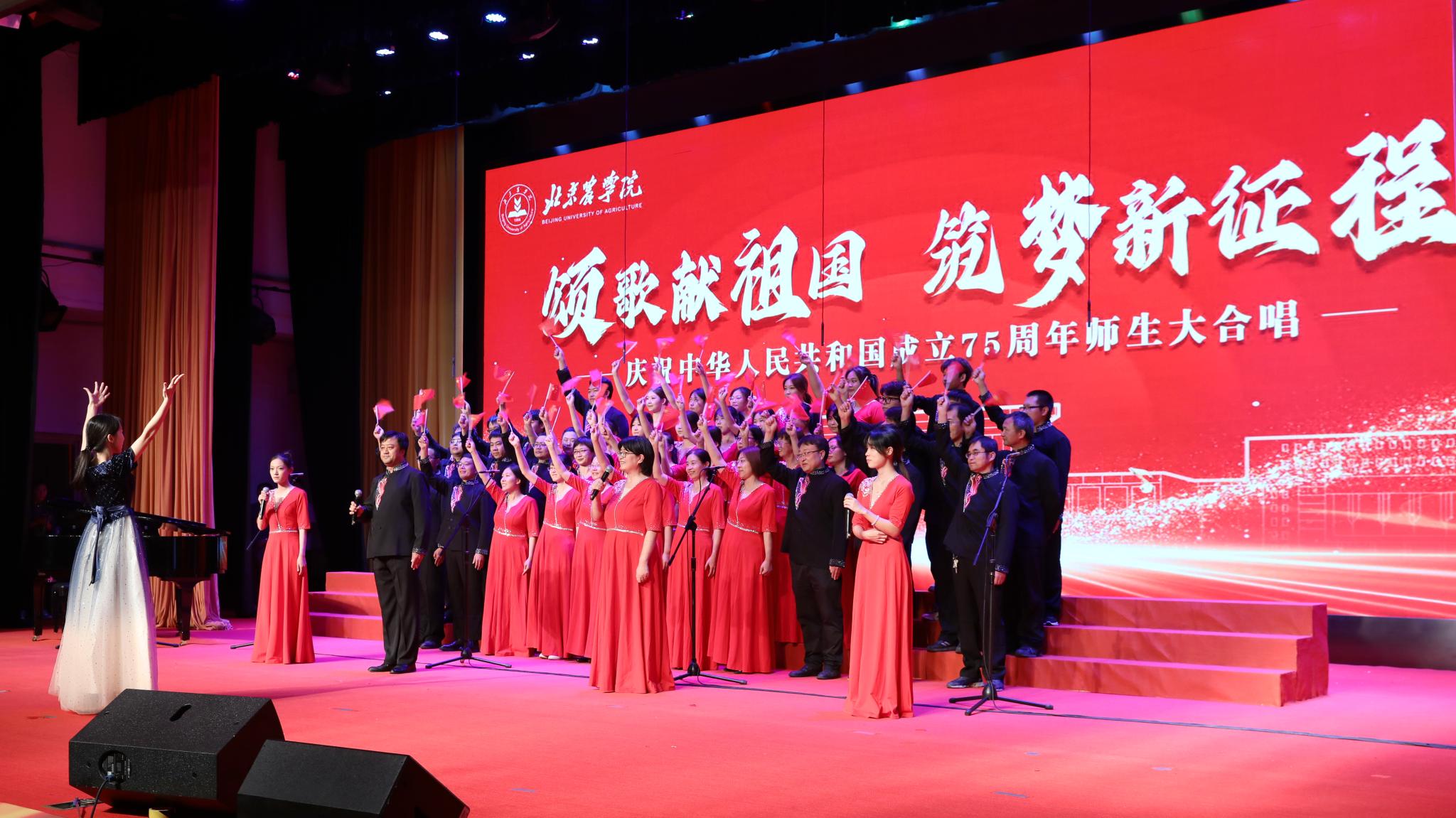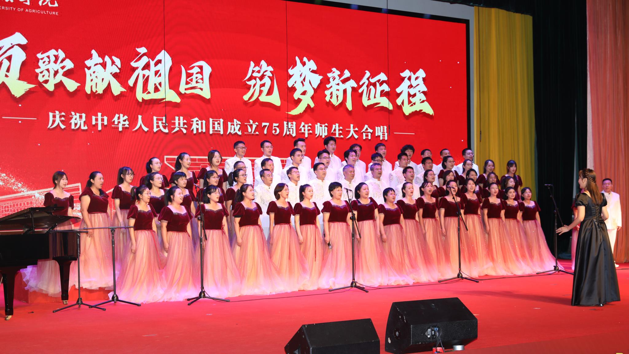 為迎接中華人民共和國成立75周年,大力弘揚愛國主義精神,強化強農興農使命擔當,9月25日下午,學校舉辦“頌歌獻祖國 筑夢新征程”活動,全體校領導與師生共唱歌頌黨、歌頌祖國、歌頌人民的經典歌曲和飽含強農興農、愛校榮校之情的校歌《綠色的希望》。唱出北農人踔厲奮發、勇毅前行的精神風貌,抒發為建設教育強國、農業強國貢獻北農力量的壯志豪情。