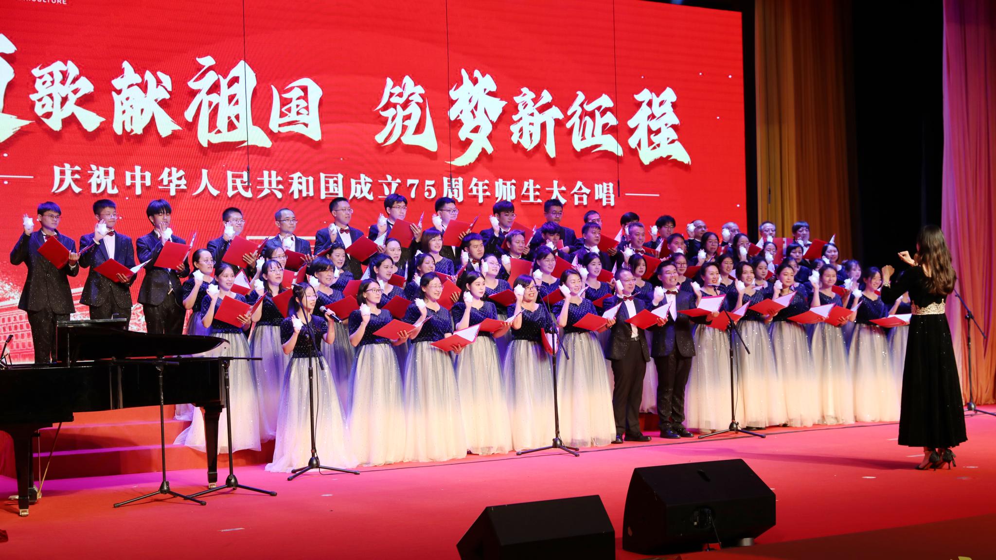 活動最后,全體師生飽含深情演唱《歌唱祖國》,唱出愛黨愛國之情,展現了全校師生牢記初心使命、奮進新征程、建功新時代的豪情,表達了凝心聚力建設國內一流國際知名都市農林特色高水平應用型大學、為強國建設和民族復興偉業作出更大貢獻的信心和決心。