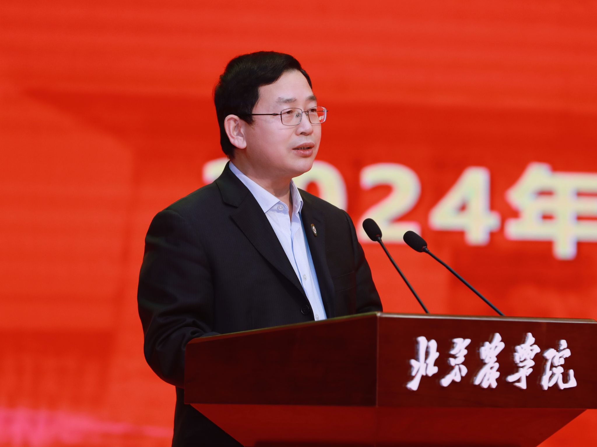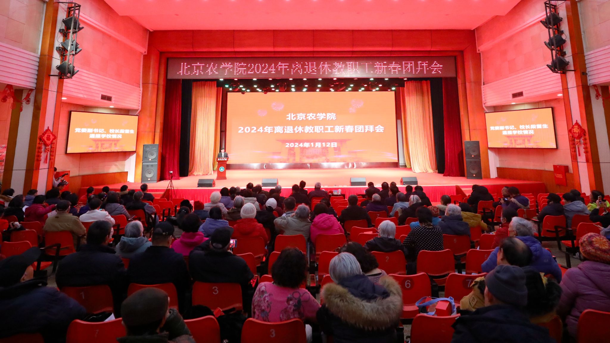玉兔歡騰辭舊歲,金龍迎春啟新程。1月12日下午,學校在禮堂舉行2024年離退休教職工迎新春團拜會。黨委書記趙鋒,黨委副書記、院長段留生,黨委副書記仲叢生與離退休老領導、老同志代表歡聚一堂,共敘北農情懷,共迎新春佳節。