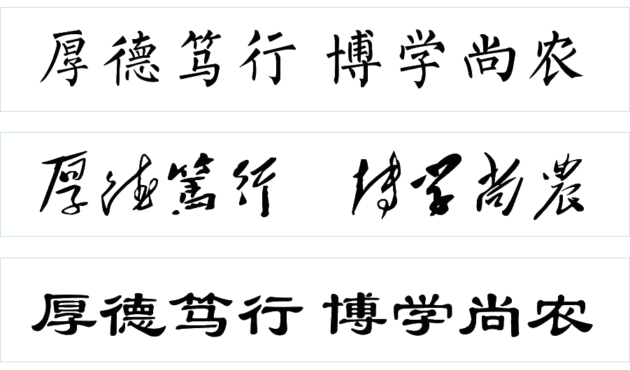 厚德篤行,意在強調(diào)學(xué)校“育人為本、德育為先”的教育理念,期望師生塑造高尚的道德品格,以德立身,注重實踐,用以倡導(dǎo)尚德重行的育人精神。博學(xué)尚農(nóng),旨在突出學(xué)校“以農(nóng)為本、博采眾長”的教育思想,要求師生重視農(nóng)業(yè)、關(guān)注“三農(nóng)”,掌握廣博知識,積淀深厚學(xué)問,用以培養(yǎng)宏達廣識的愛農(nóng)求知情懷。二者密切相聯(lián)、相輔相成,充分體現(xiàn)了“德才兼?zhèn)洹迸c“知行合一”的全面要求和完整統(tǒng)一,與學(xué)校“以農(nóng)為本、唯實求新”的辦學(xué)理念和復(fù)合型應(yīng)用型都市型現(xiàn)代農(nóng)林人才的培養(yǎng)目標一脈相承。