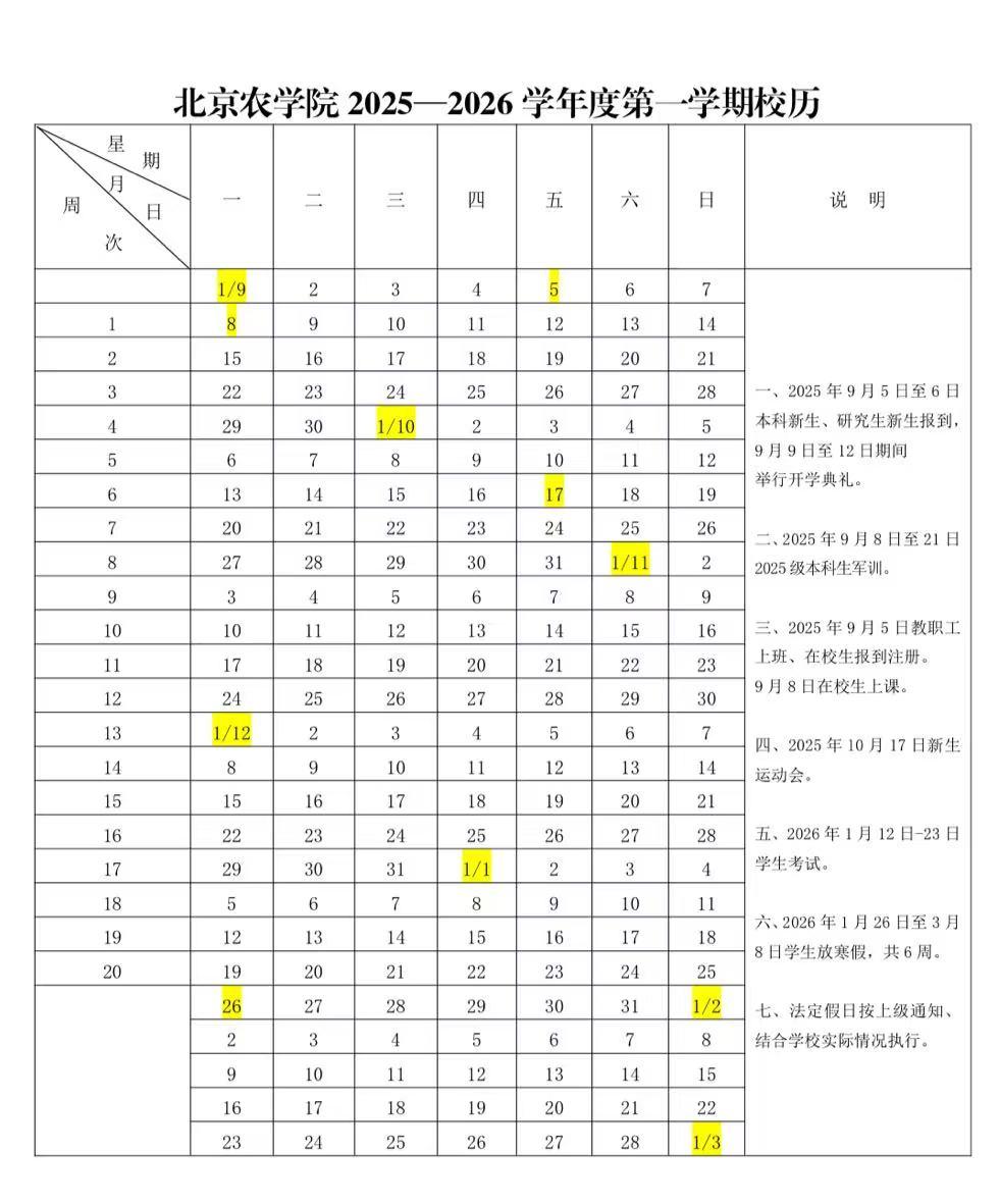 2025-2026學年度第一學期校歷